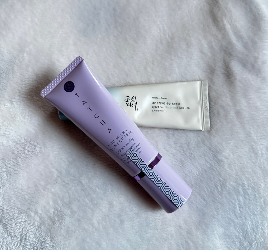 Tatcha Milky Moisturising SPF (£49) / Beauty of Joseon Aqua Fresh SPF (£16)